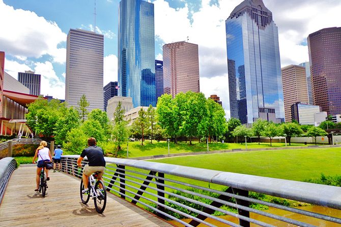 Unwind in Buffalo Bayou Park: Cycle or stroll along leafy trails with open skyline views. The park’s public art and calm waters offer a relaxed way to experience Houston’s green spaces.