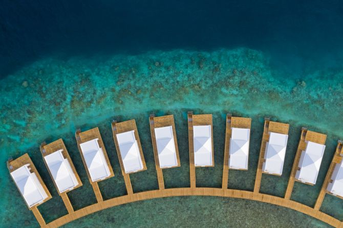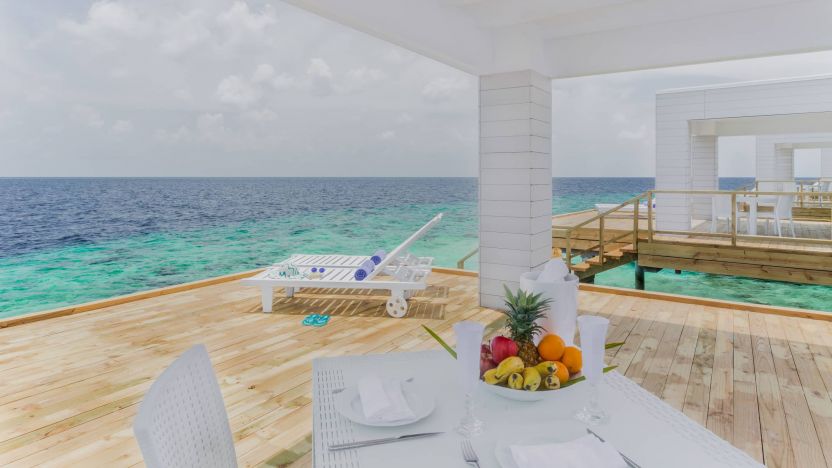 Beach bungalows face the pristine and shallow water of the lagoon and have private deck veranda with direct access to the beach.Rooms feature custom-designed furniture, independent air conditioning, ceiling fan and bathroom with double basin and open-air shower while Water bungalows built on stilts over the lagoon and on two separate piers host private terrace. Rooms are equipped with climate control, handmade wooden parquet doors, tasteful furnishings including custom made furniture, king size bed and sofa bed. Bathrooms have twin basins and a spacious walk-in shower.