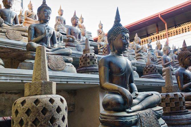 Visit Gangaramaya Temple: A cultural landmark blending Sri Lankan, Thai, Indian, and Chinese architectural influences. Wander through halls filled with ancient relics, statues, and devotional offerings – a unique mix of spirituality and artistry at the heart of Colombo.
